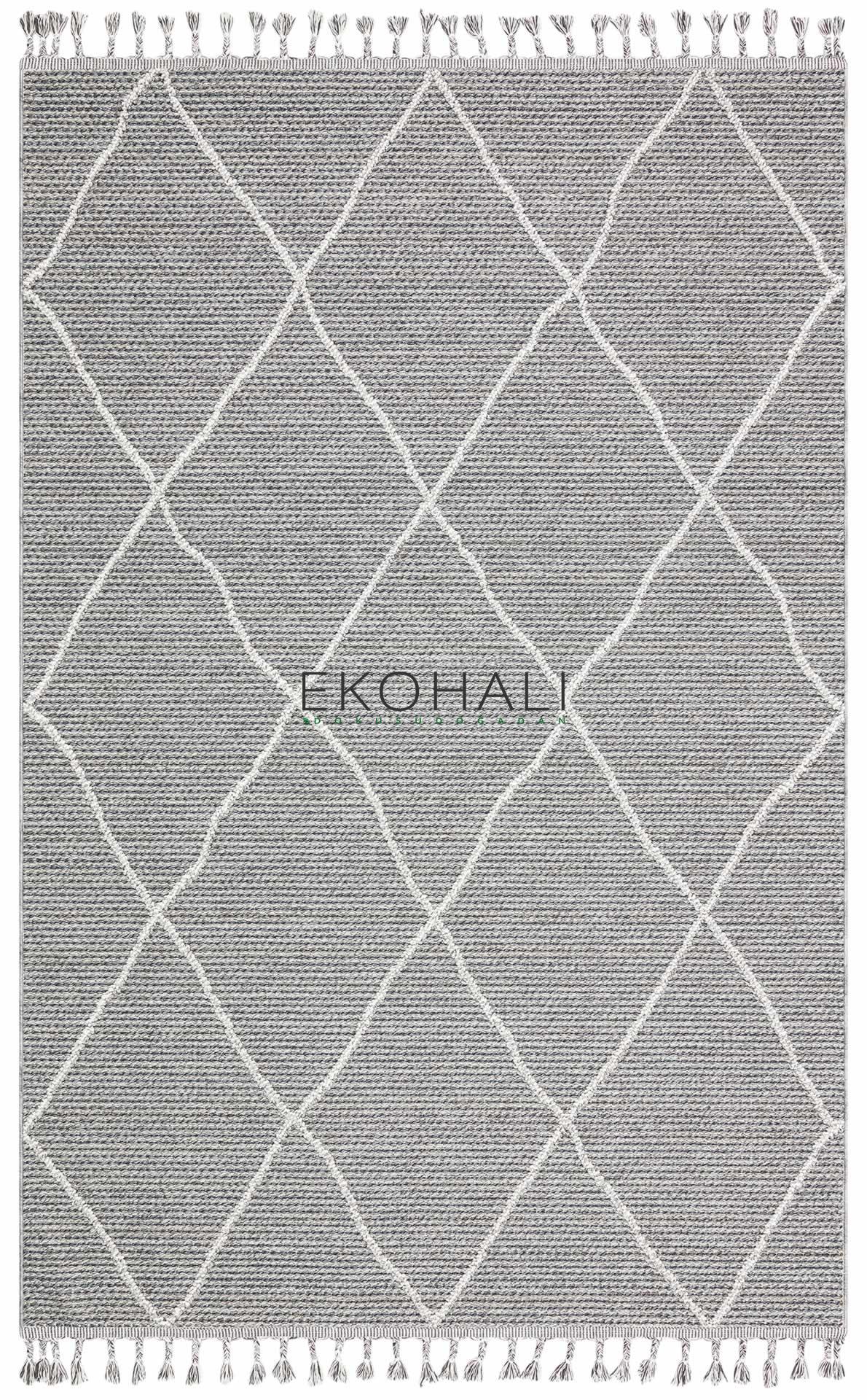 Hav vermeyen özel ipler ile üretilen etnik örgü desenlere sahip makine halısı